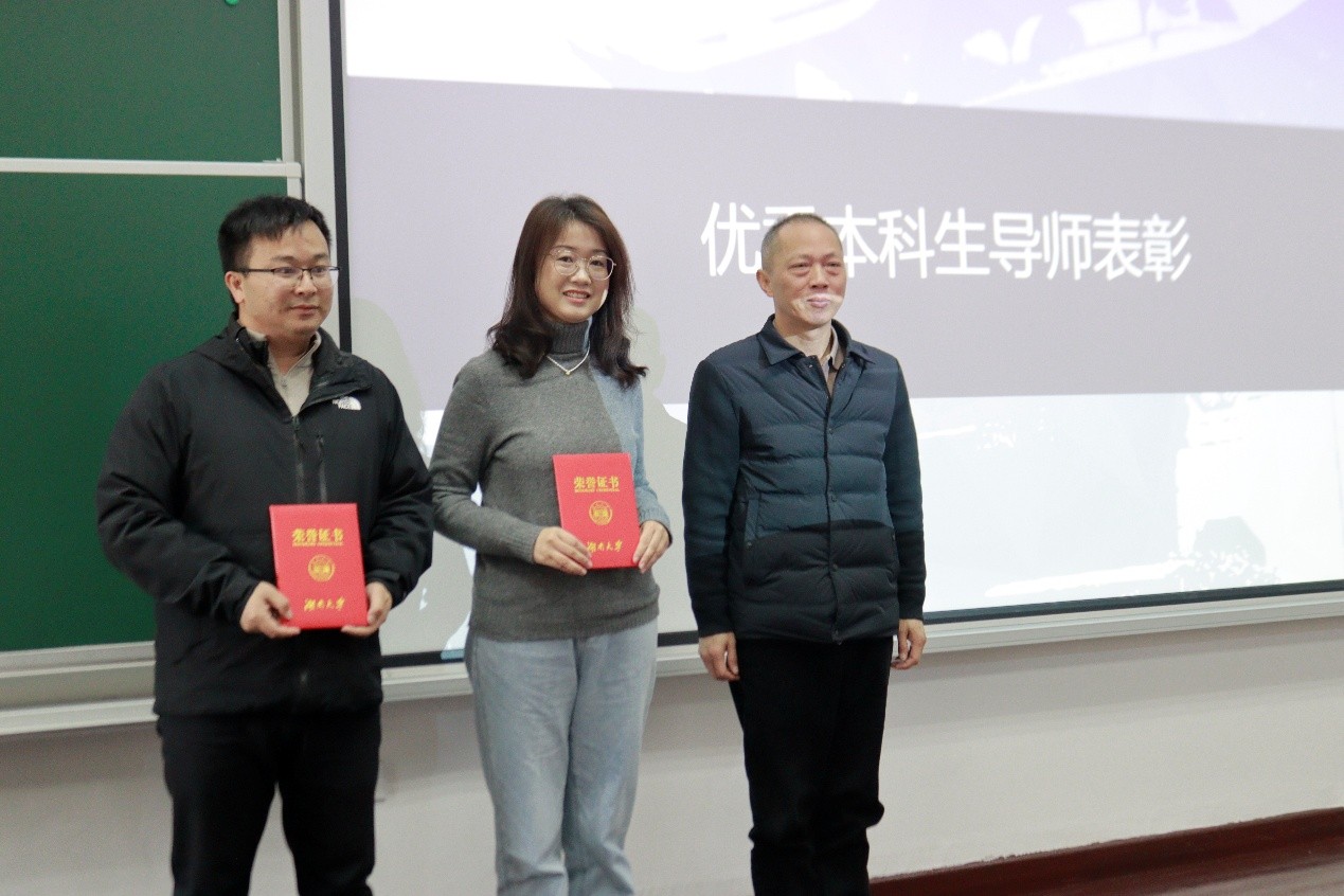 对优秀本科生导师——陈坤秋、周蔚两位老师进行表彰,由金沙博彩官网