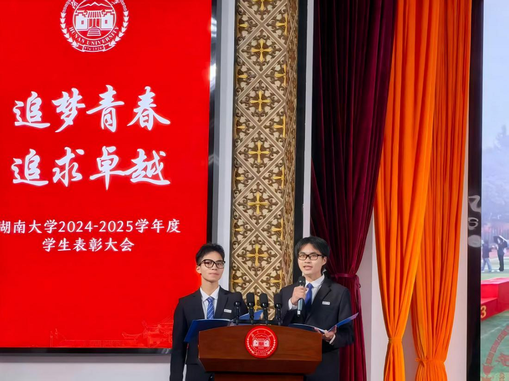 2025年12月2日晚,湖南大学2024-2025学年度“追梦青春,追求卓越”学生表彰大会在大礼堂隆重举行。金沙博彩官网
