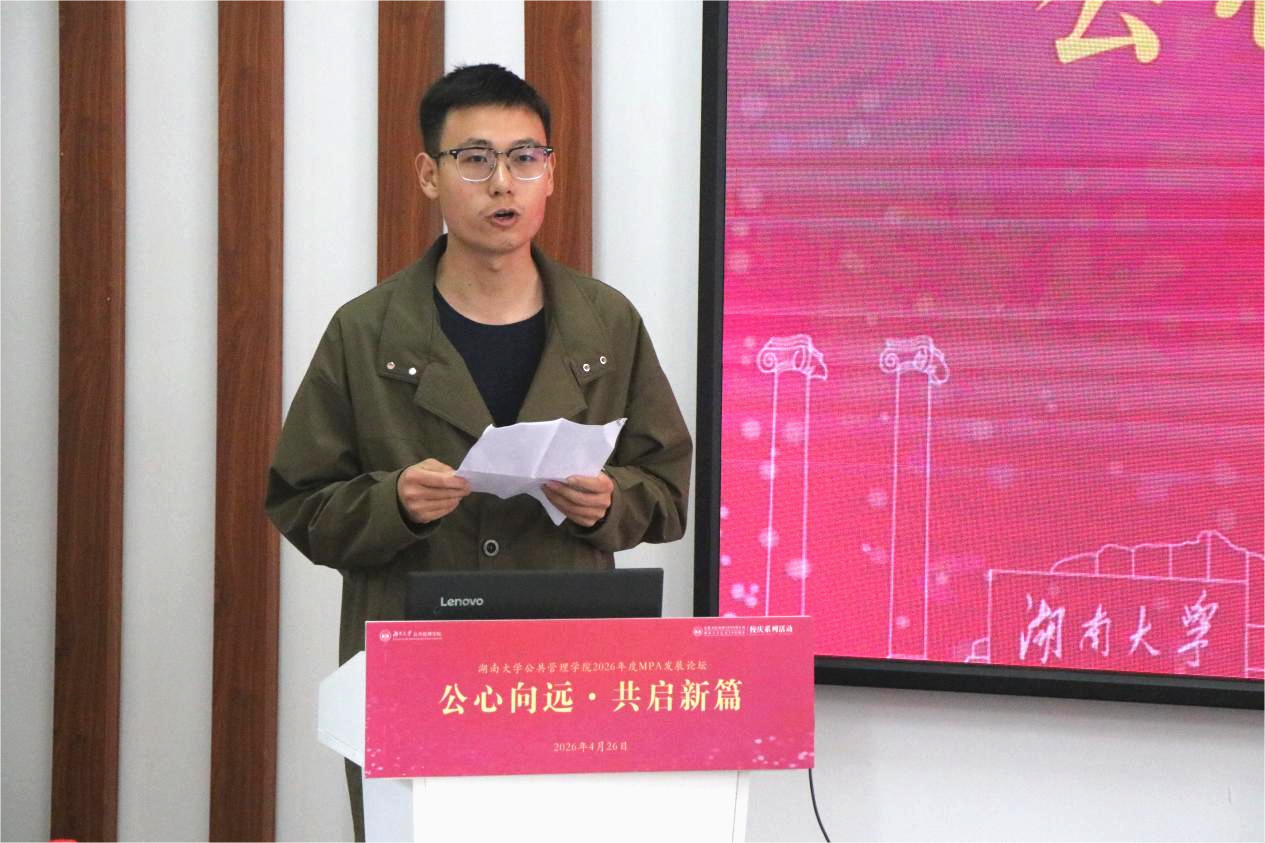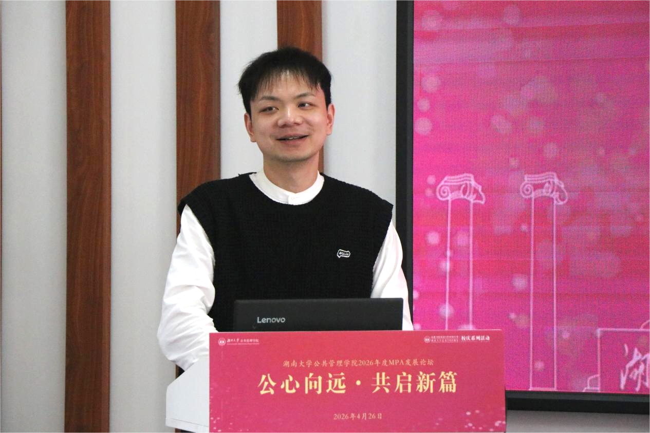 2025届MPA校友邓正宇带来题为《传承湖大文脉,做“解决问题”的公共管理人》的分享,从湖大文脉谈到公管人的使命与担当。